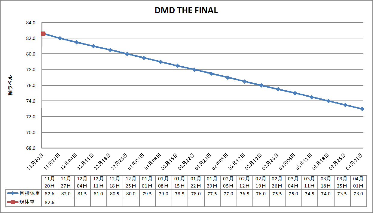来年4月1日には73kg(9.6キロ減)を目標に設定しました。